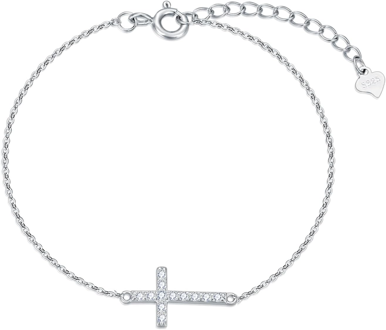 Sterling Silver 0.15 carat Natural Diamond Cross Bracelet for Women, Christian Jewelry Gifts for Her, 6.5-8.5 Inches