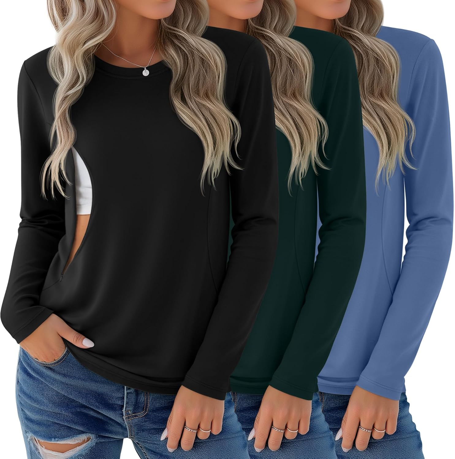 3 Pack Nursing Tops for Breastfeeding Maternity Shirts Zipper Long Sleeve Round Neck Knit Casual Nursing Clothes