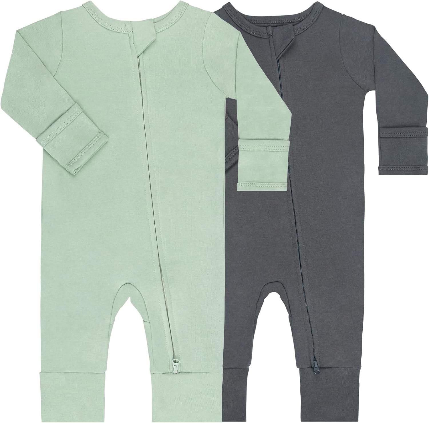 GUISBY Cotton Sleepers Footless Pajamas with Zipper and Mittens Long Sleeve Rompers for Baby