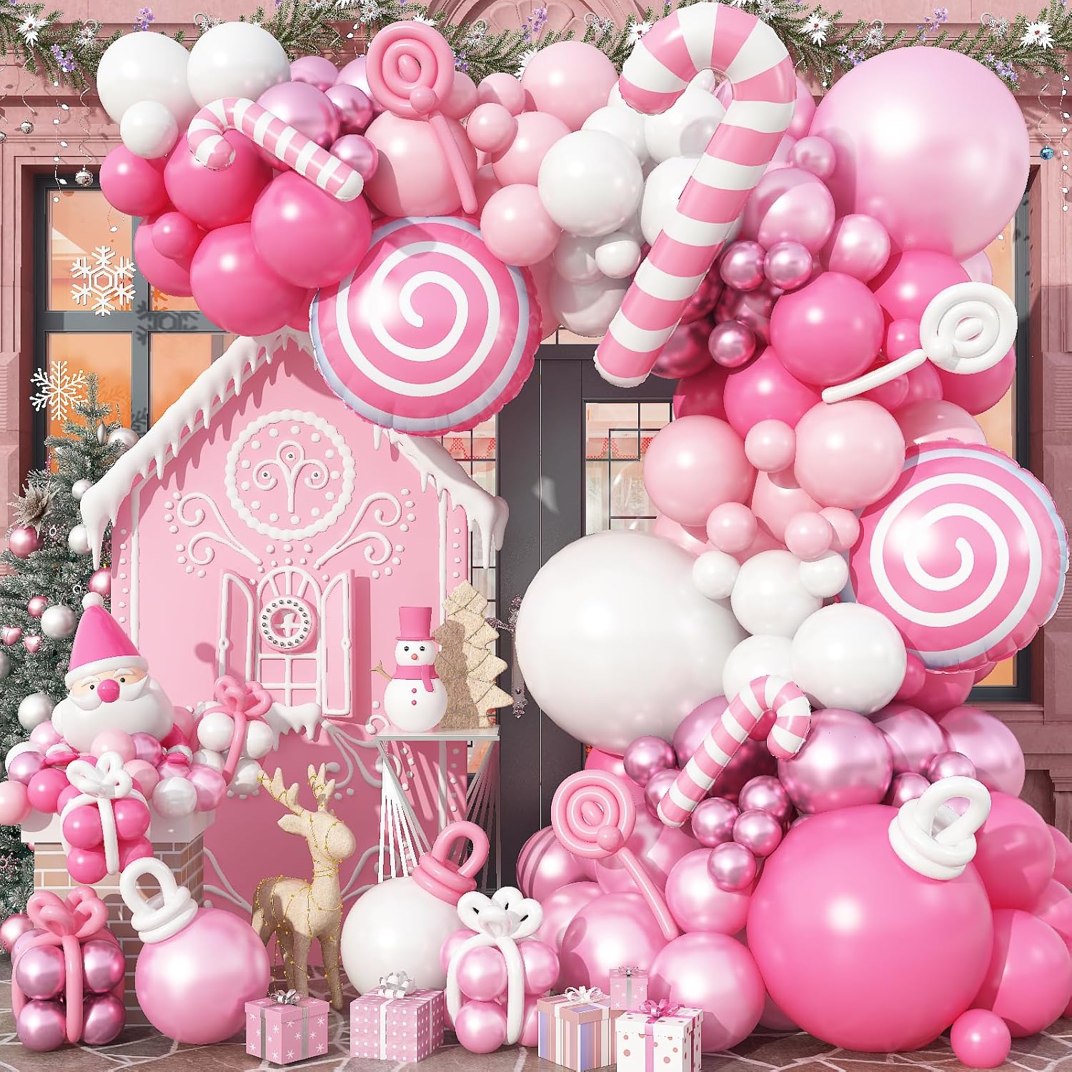 - Balloons Christmas Decorations: Create a dreamy pink christmas decorations scene with christmas gift box balloon, candy cane balloons, and peppermint balloons. This pink christmas balloon garland kit is great for pink christmas decor, nutcracker party supplies, or candy cane decoration christmas, or holiday balloon arch kit, creating a dreamy festive atmosphere