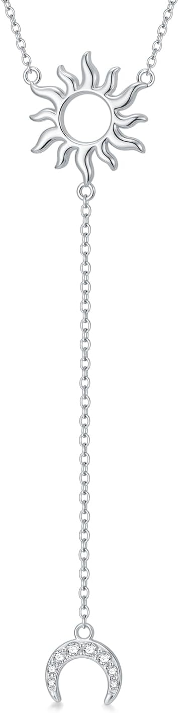 Diamond Sun Moon Y Necklace for Women 925 Sterling Silver Lariat Long Necklaces with Lab Grown Diamond Jewelry Gift for Birthday