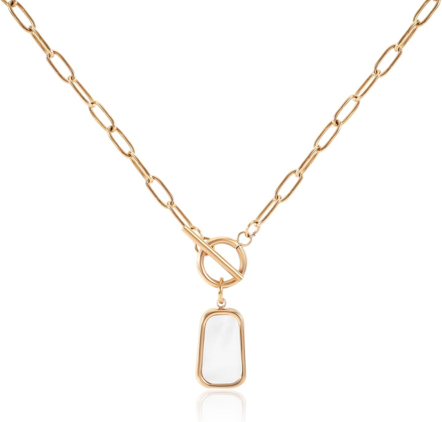 Gold Natural White Sea Shell Necklace, Stainless Steel Long Plate Pendant Necklace for Women Trendy Jewelry Gift