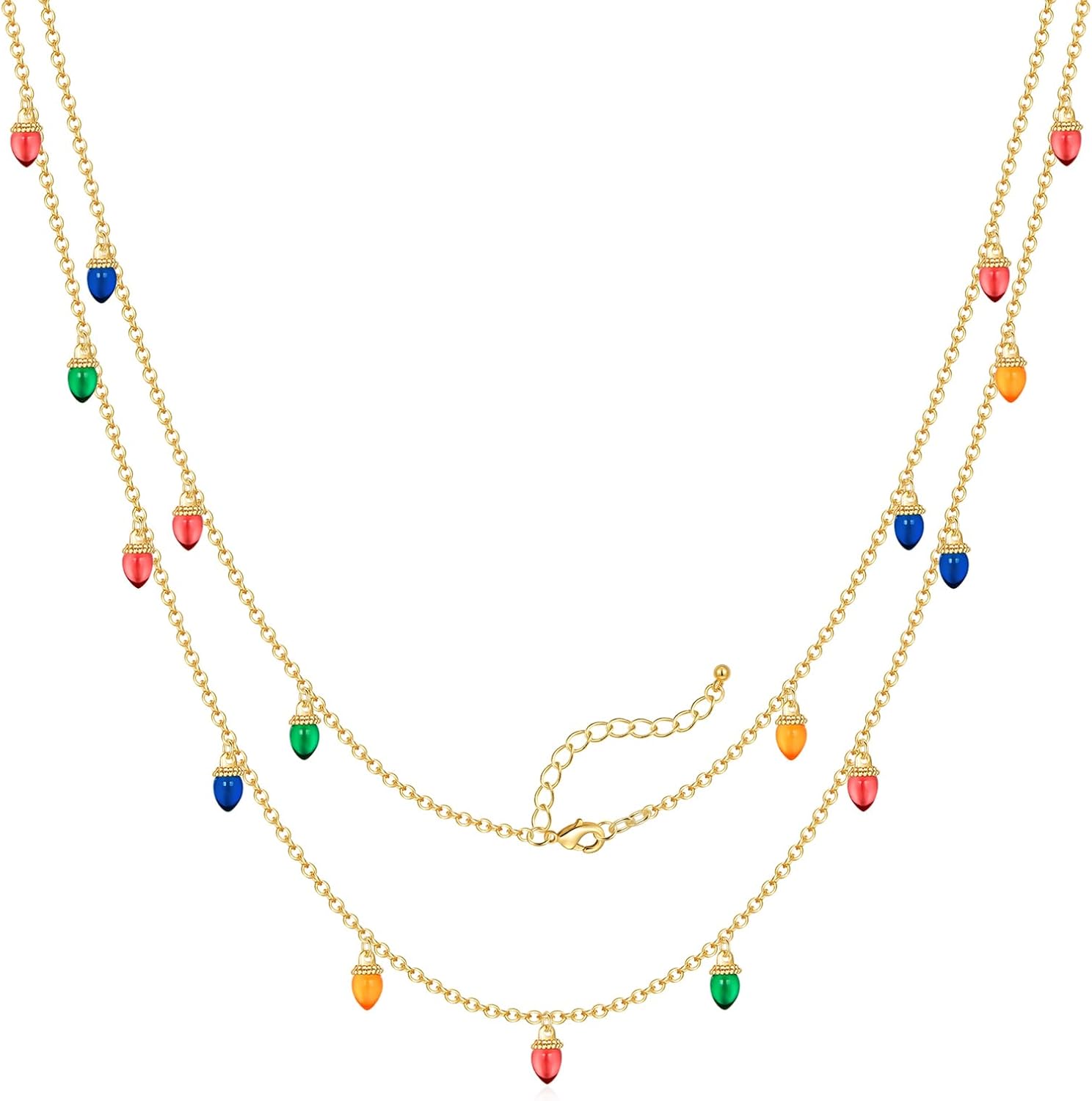 Christmas Necklaces for Women Colorful Light Bulb Necklace Christmas Tree Pendant Necklace Cute Xmas Reindeer Charm Necklaces Holiday Jewelry
