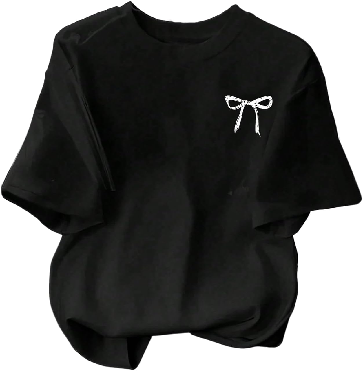 SweatyRocks Women's Bow Graphic Tees Casual Printed Short Sleeve Oversized T Shirt Tops