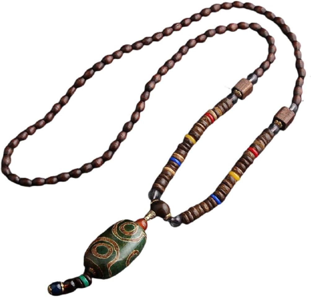 DATOA Retro Colorful Handmade Vintage Turquoise Wooden Beads Necklace Tibetan Carved Long Tassel Pendant Necklace Wood Jewelry-fish for Women