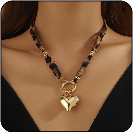 Scarf Necklace with Charm Bandana Necklace with Charms Gold Chunky Heart Bow Ball Cross Flower Starfish Spiral Conch Pendant Necklaces Leopard Necklaces for Women Trendy Jewelry