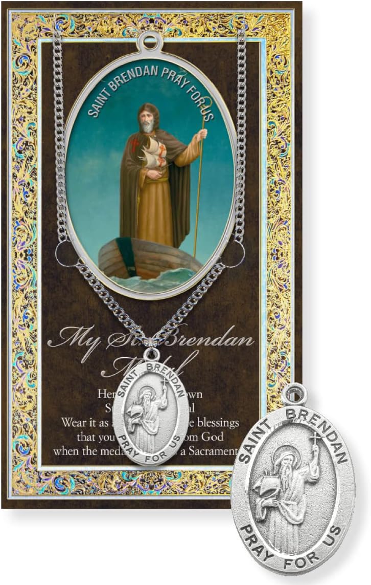 Hirten St. Brendan Pewter Medal Pendant with Chain, Made in USA