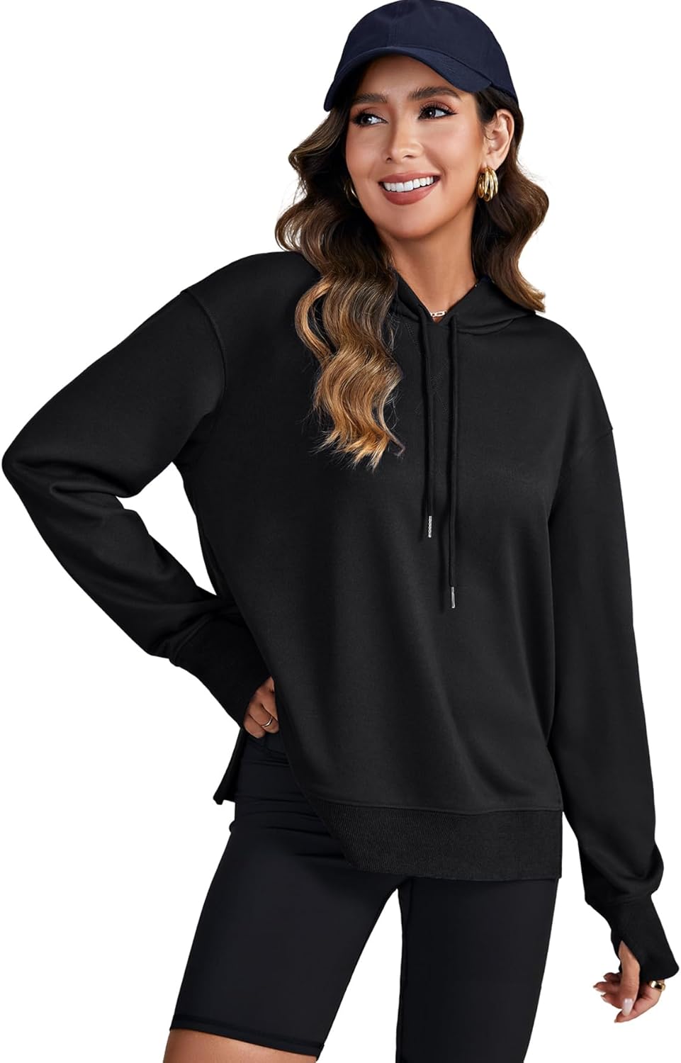 LYANER Women's Hoodies Side Slit Long Sleeve Thumb Hole Casual Loose Sweatshirts