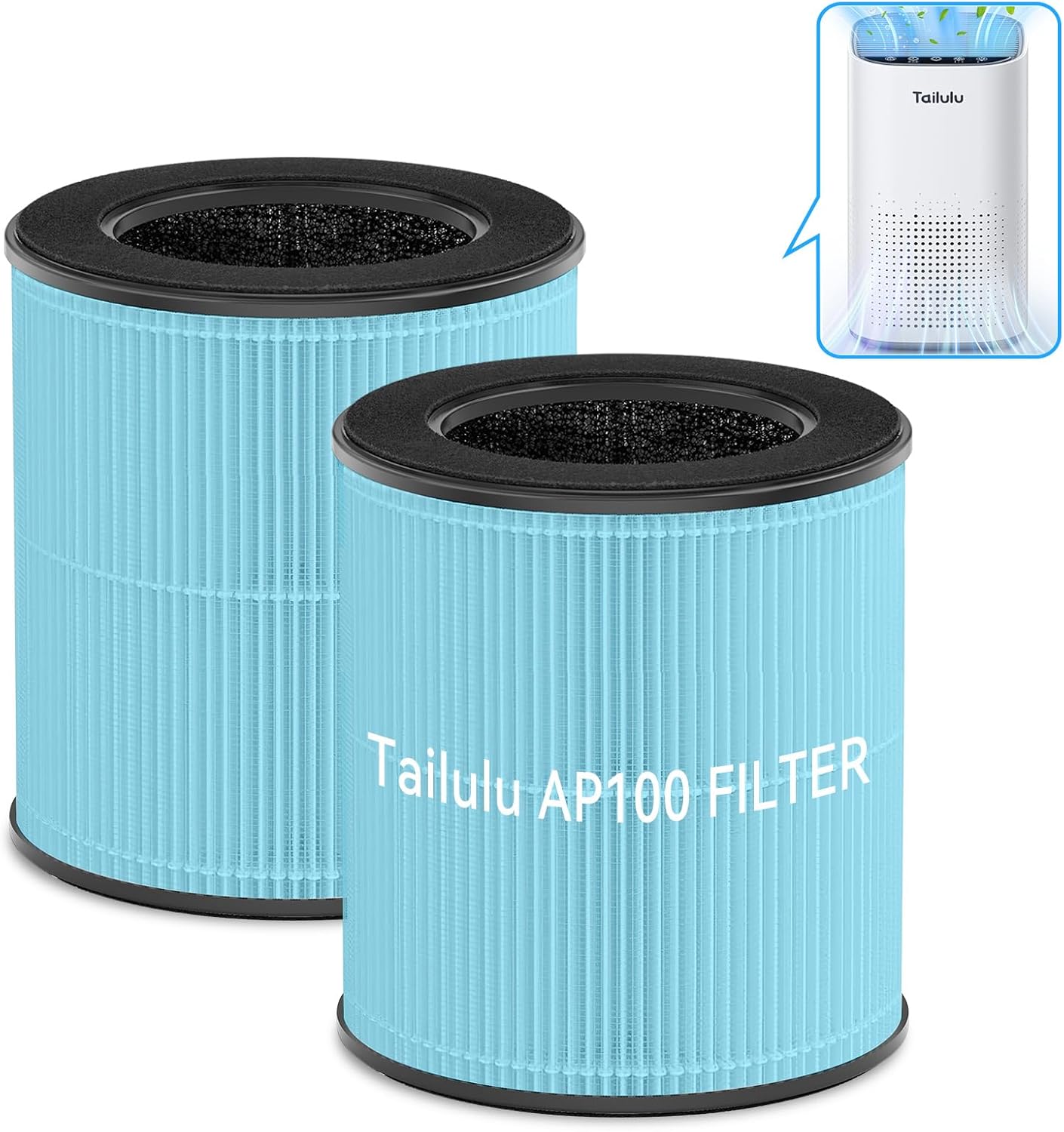 Tailulu Official AP100 Air Purifier Replacement Filter, 3-in-1 Air Purifier Filter, True H13 Filter, 2Pack(Blue)