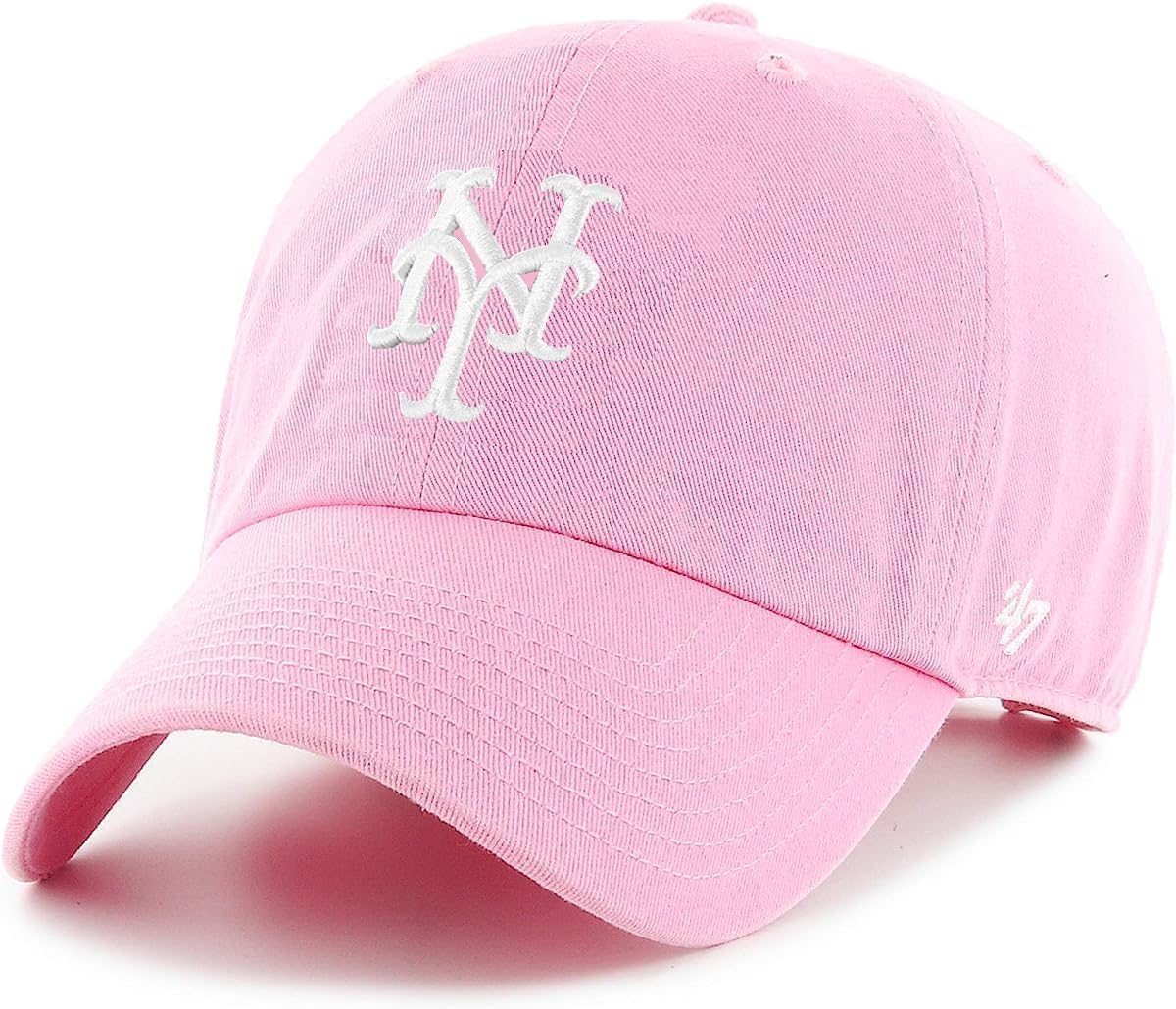 47 Brand MLB Rose Pink Primary Logo Clean Up Adjustable Baseball Cap Hat, Adult One Size Fits All