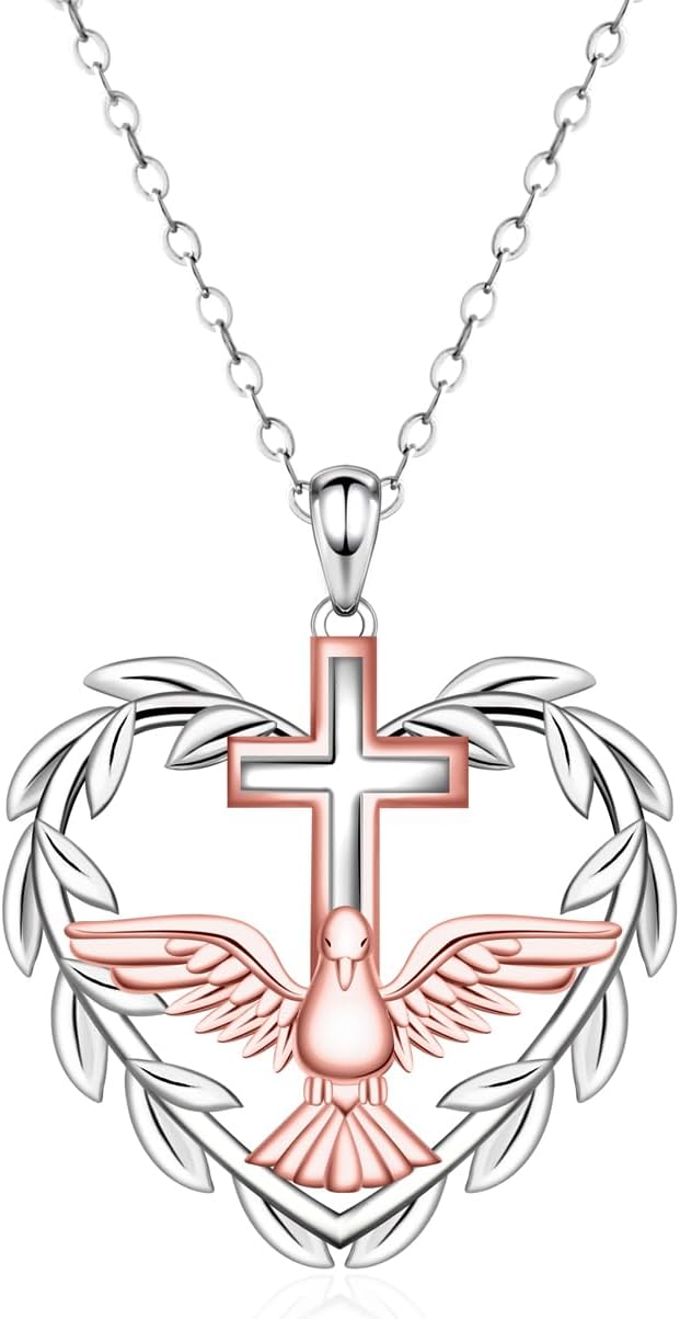 Peace Bird Necklace for Women - 925 Sterling Silver Olive Leaf Peace Dove Necklace Pendant Cross Jewelry Gift