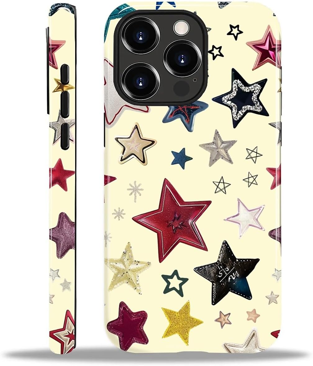 for iPhone 15 Pro Case [Compatible with Magsafe] Pattern Design for Women Girls Hybrid 2 Layer Hard Shell Silicone Protective Magnetic Cover,C Aesthetic Color Stars