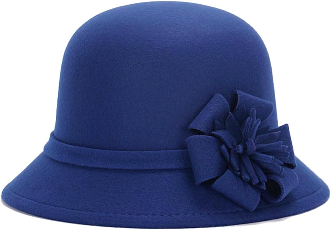 Bucket Hat for Women, Elegant Flower Winter Adjustable Felt Cloche Hat Vintage Warm Church Fedora Cap
