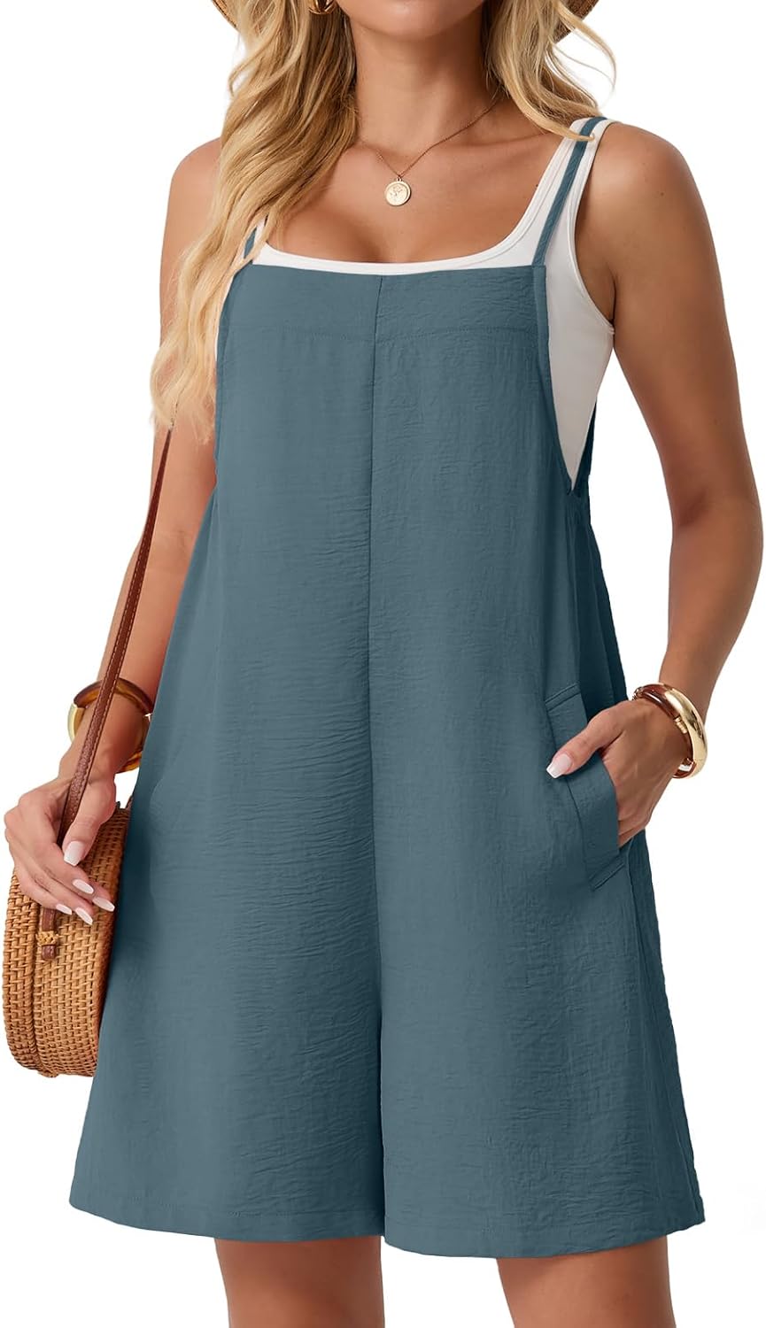 Lepunuo Rompers for Women Summer Casual Jumpers Boho Short Jumpsuits Overalls with Pockets Vacation Outfits