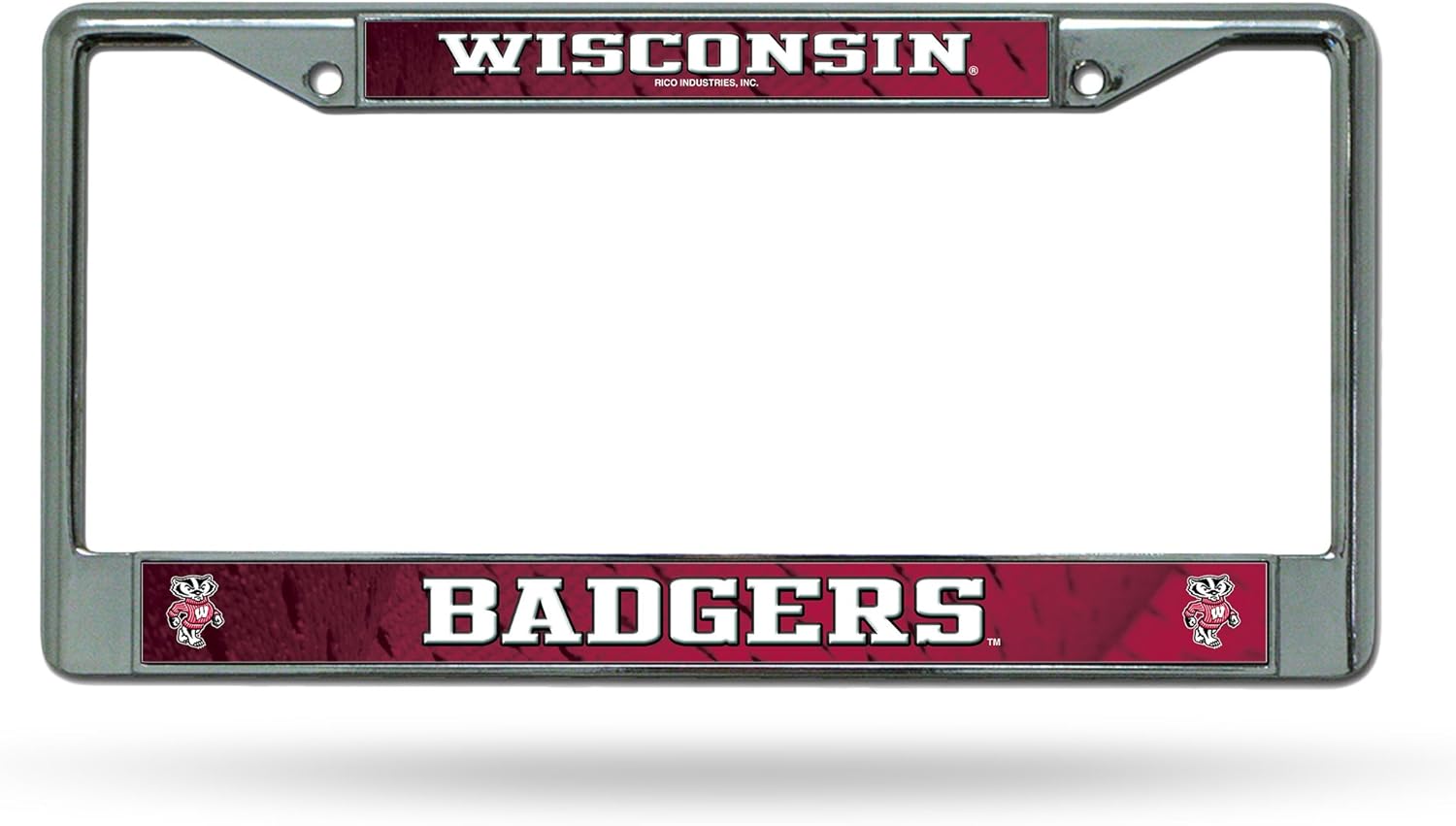 Rico Industries NCAA Wisconsin Badgers 12" x 6" Silver Chrome Frame W' Decal Insert Car/Truck/SUV Auto Accessory
