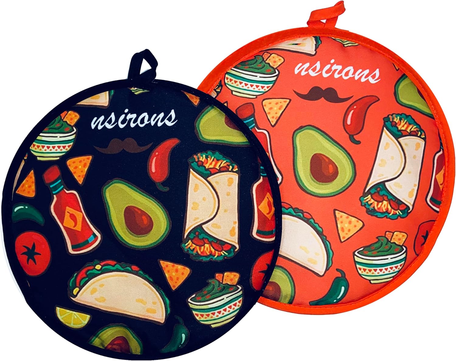 - 12 Inch Tortilla Warmer: Our tortilla warmer is 12 inches in diameter, fitting up to accommodates up to 12 or 15 Tortillas and keeps them warm for 1 hour. The tortilla warmer pouch is also available in different color-coordinated combinations for you to choose from, making your kitchen utensils unique