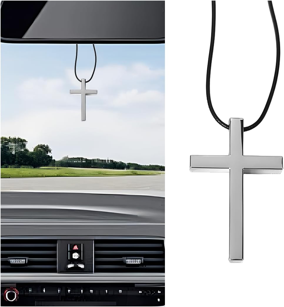 - Easy Installation: To install, first unfasten the buckle at the end of the black cord. Thread the cord through the support rod of your car's rearview mirror. Then reconnect both ends of the cord through the buckle to secure it. Adjust the hanging position of the cross pendant so it hangs naturally without obstructing the rearview mirror's field of vision. The entire process is simple and easy to operate, requiring no additional tools.