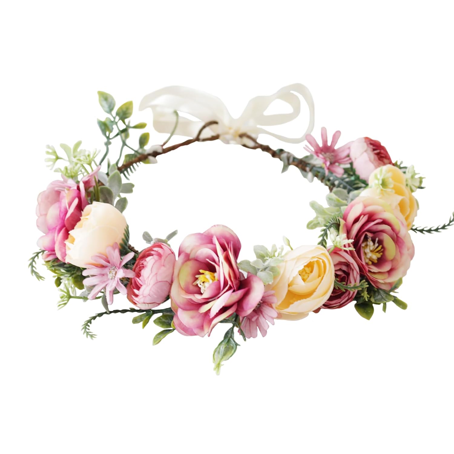 - Materials: The fairy circlet is made of artificial flower, plastic leave, ribbon; Package Included: 1x flower crown