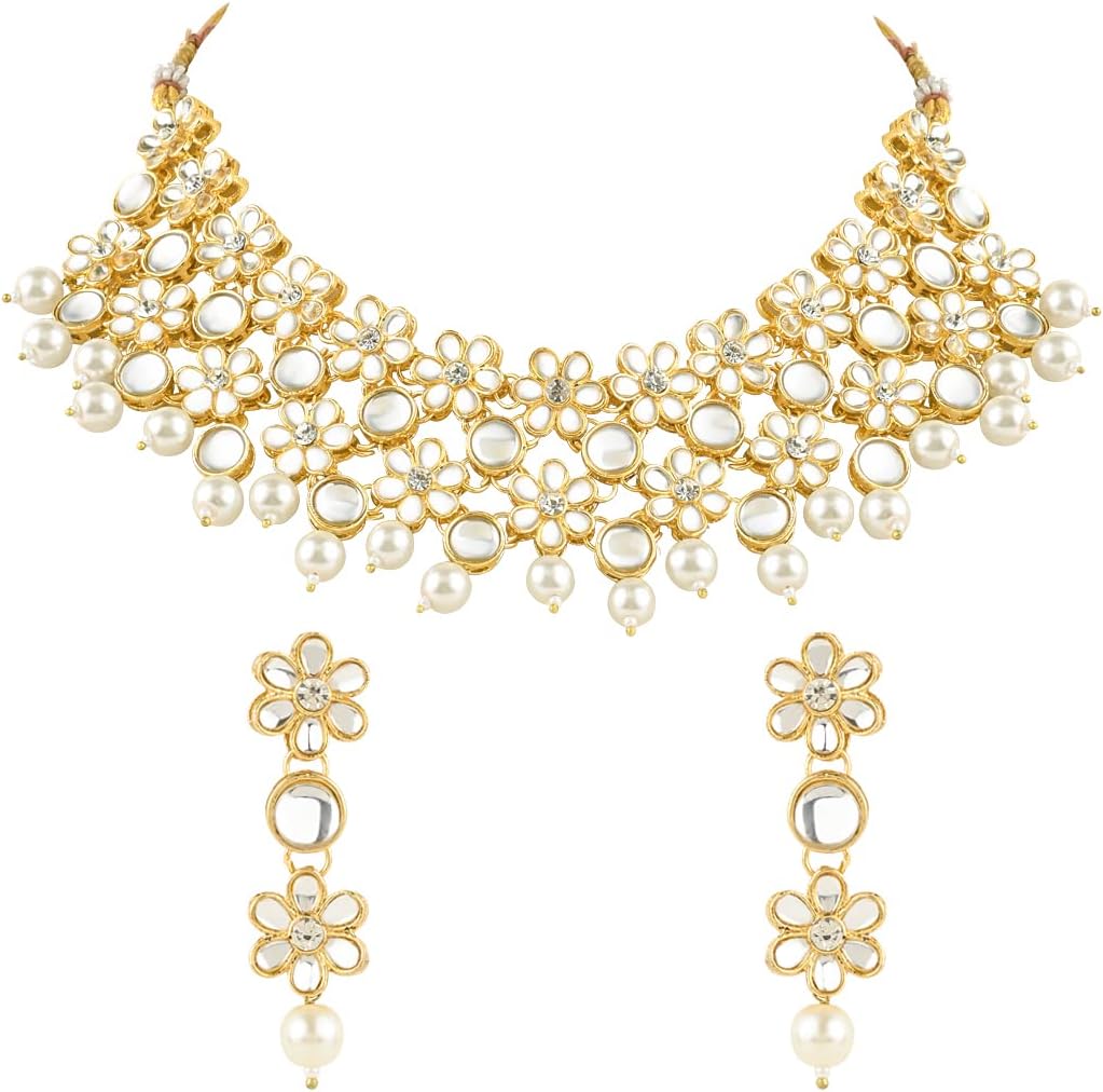I Jewels Gold Plated Indian Wedding Bollywood Kundan Choker Necklace & Earring Ethnic Jewellery Set Gift for Women (K7229)