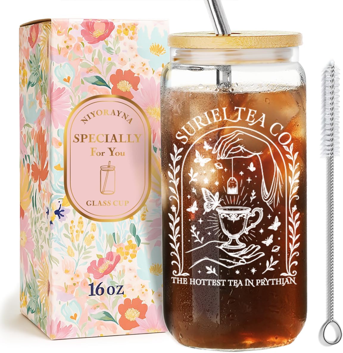 Suriel Tea Co Fantasy Romance Bookish Gifts for Book Lovers Acotar Merch City of Starlight Gifts Drinking Cup with Lids and Straws,Ice Coffee Glass Tumbler,A Court of Thorns and Roses Merch-28