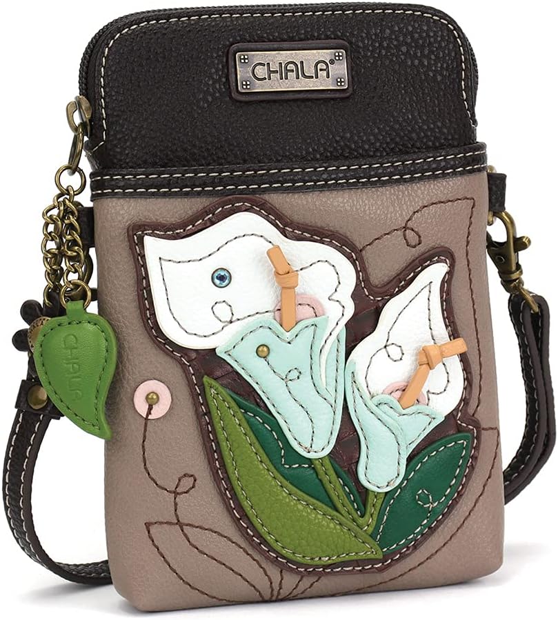 CHALA Plant Life Collection Cell Phone Crossbody Purse-Women PU Leather/Canvas Multicolor Handbag with Adjustable Strap - Calla Lily - warm gray