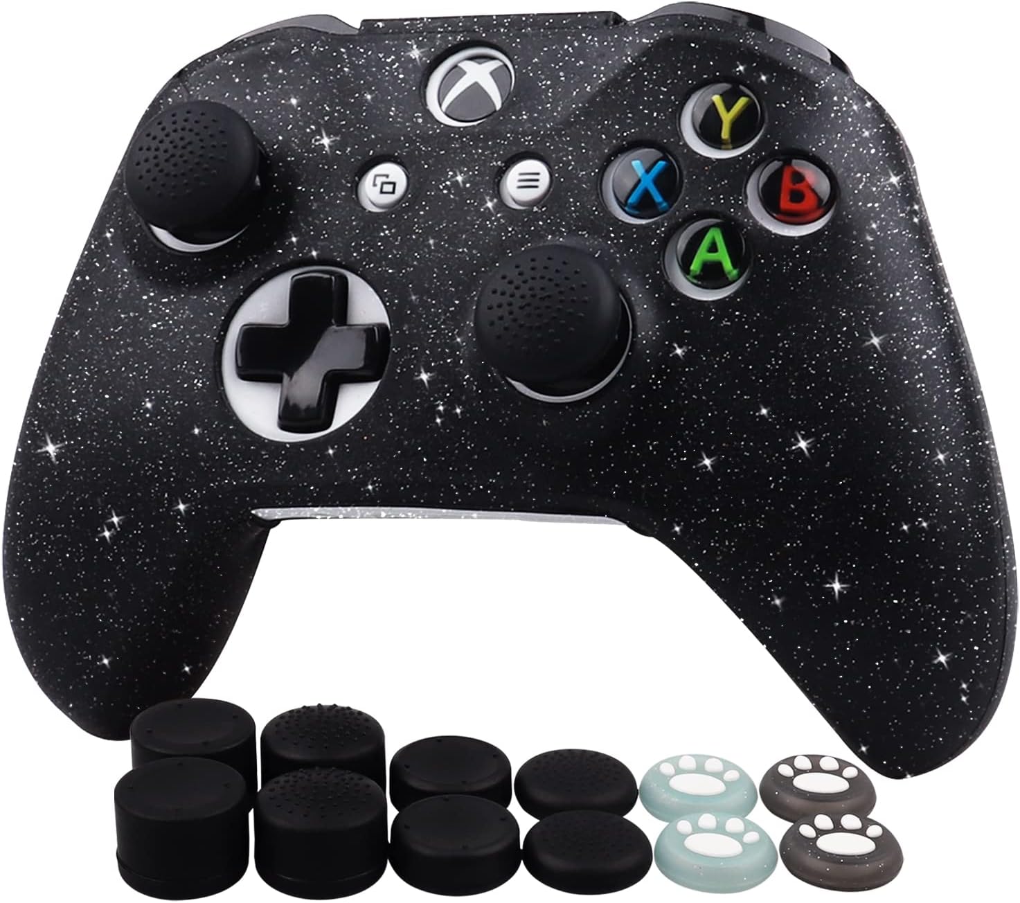RALAN Glitter Controller Skin for Xbox One, Anti-Slip Silicone Controller Cover Protector Compatible for Xbox 1 Wireless/Wired Gamepad Joystick with 4 Thumb Grips Caps and Black Pro Thumb Grip x 8