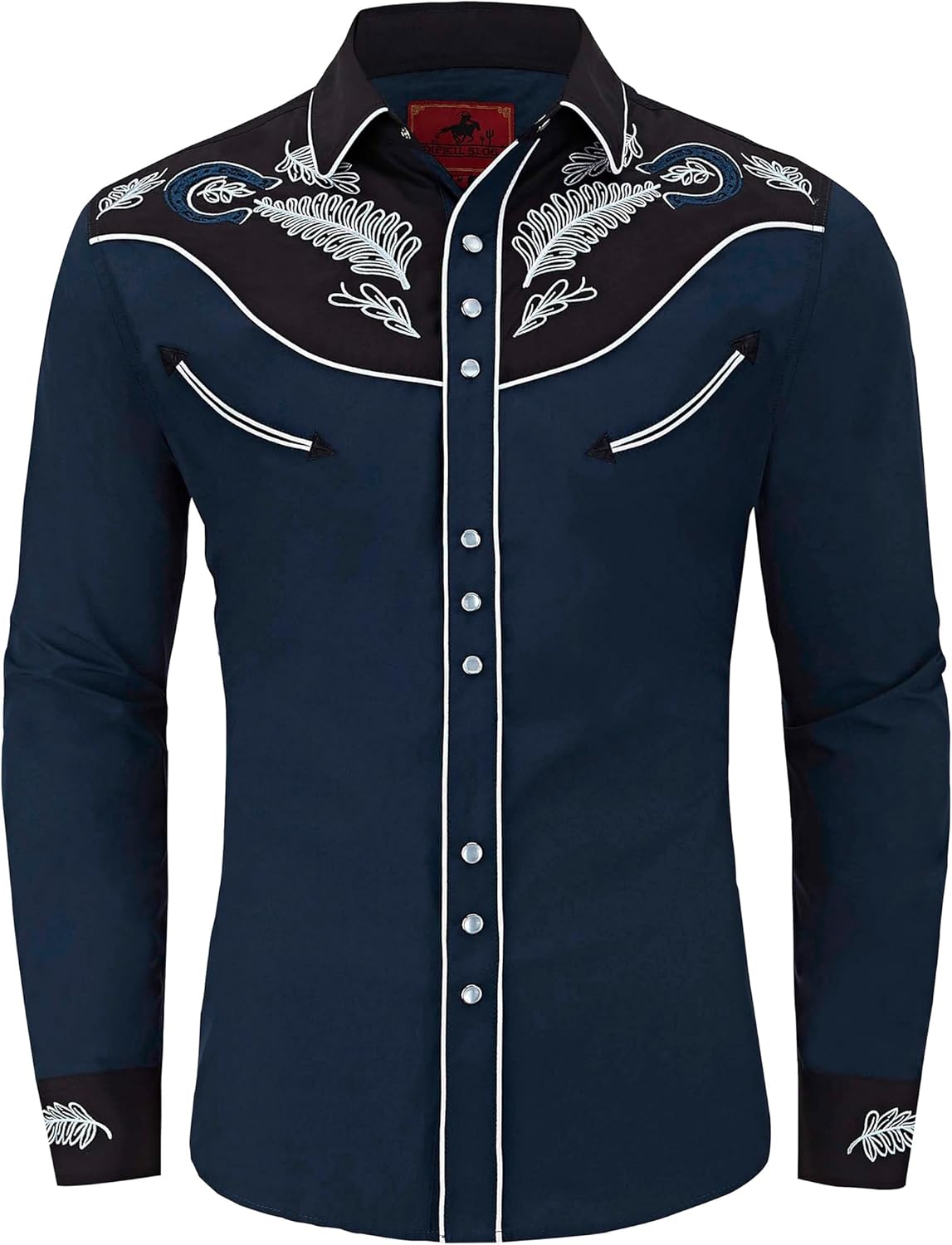 Men's Western Cowboy Shirt Embroidered Exquisite Long Sleeve Regular Fit Casual Snap Button Down Shirts