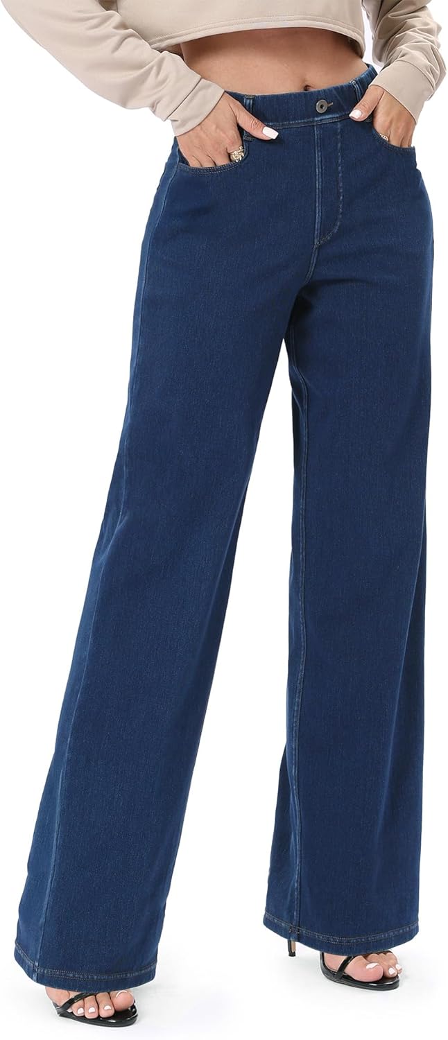 Pull On Jeans for Women Wide Leg High Waisted Stretch Baggy Sweatpant Jeans Casual Trendy Straight Denim Pants