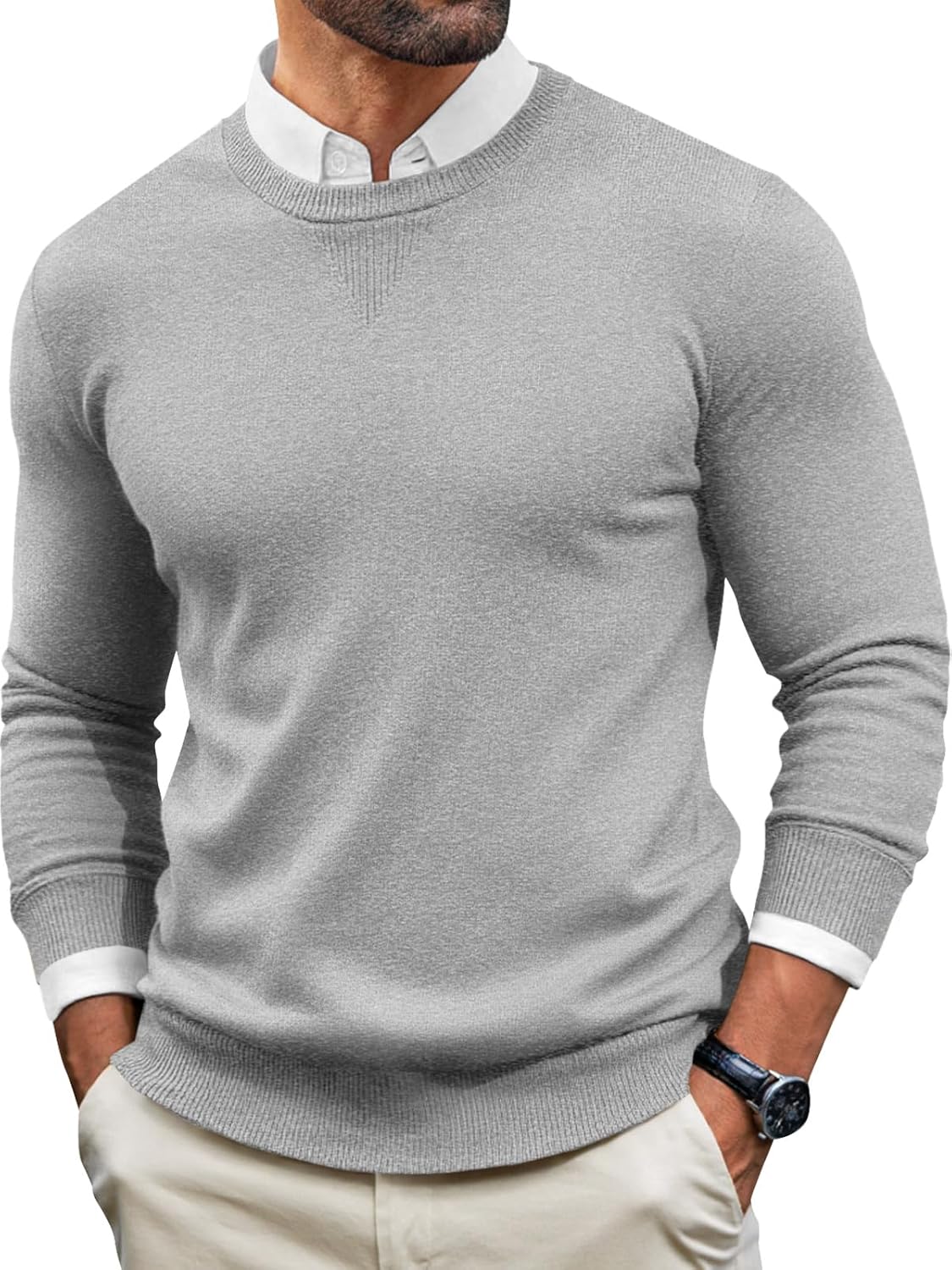 Runcati Mens Crewneck Sweaters Casual Knit Lightweight Dress Sweater Long Sleeve Slim Fit Fall Winter Pullover