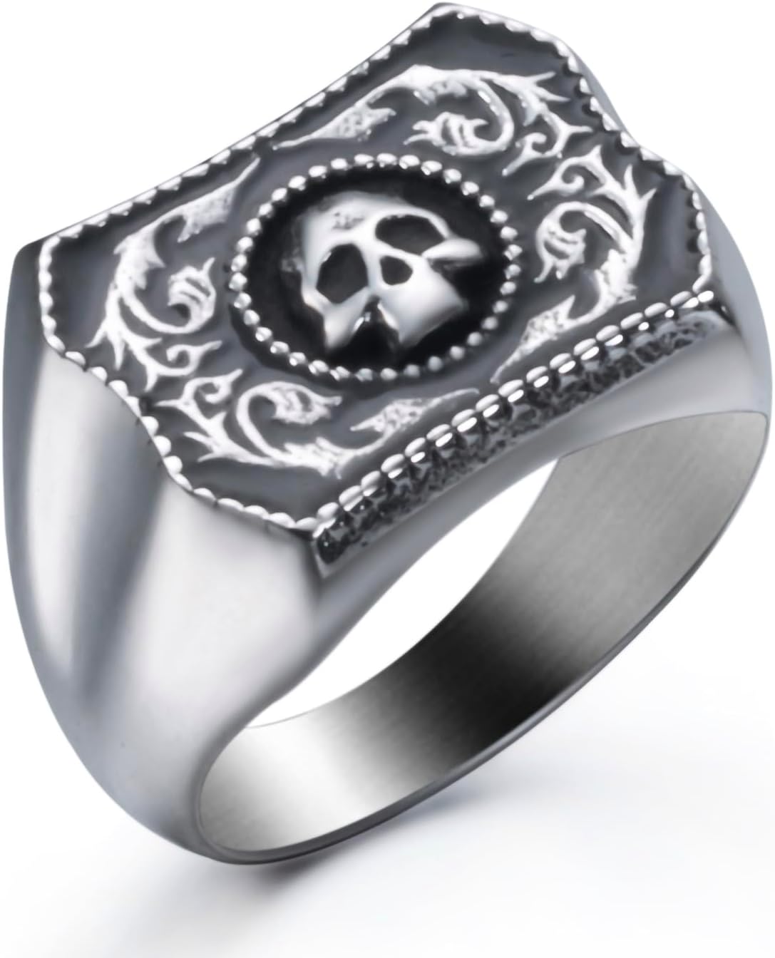 Vintage Ring Stainless Steel Gothic Skull Rings for Men Band Silver Skeleton Cocktail Party Biker Ring Size 8-13