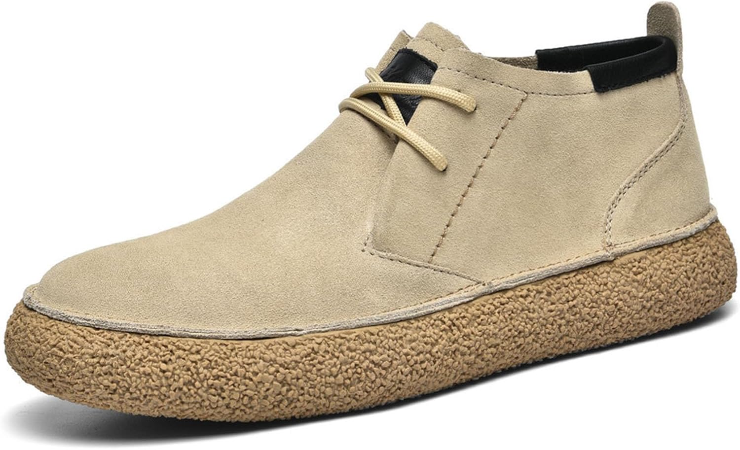 Myallfeet Men's Frosted Leather Suede Suede Mid Top Board Shoes Retro Casual Fashion Design Walking Ankle Boots Classic Non Slip Lace Up Suede Oxford Sneakers