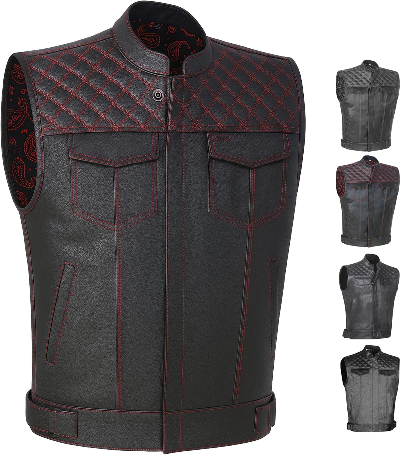 Jackets 4 Bikes SOA Men's Motorcycle Vest, Geniune Buffalo Leather, Back Armor, Inside Pockets, Motorbike Riding Club Vests Paisley Red XXL