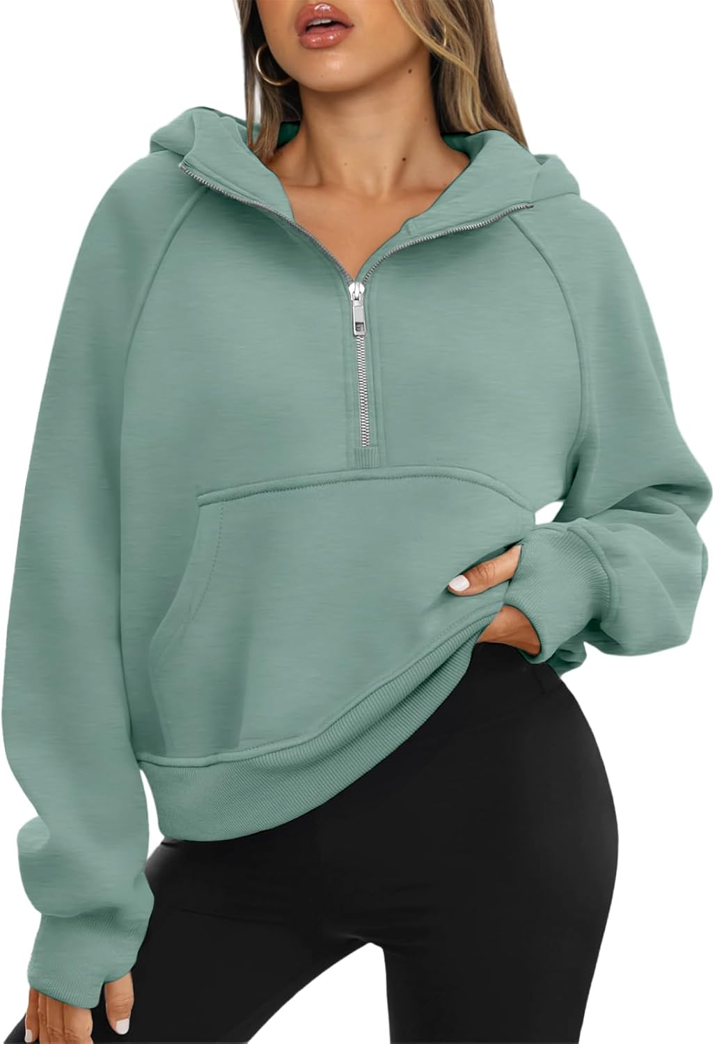 ATHMILE Womens Hoodies Long Sleeve Fleece Quarter Zip Pullover Workout Oversized Sweatshirt Fall Winter Crop Jacket Tops 2025