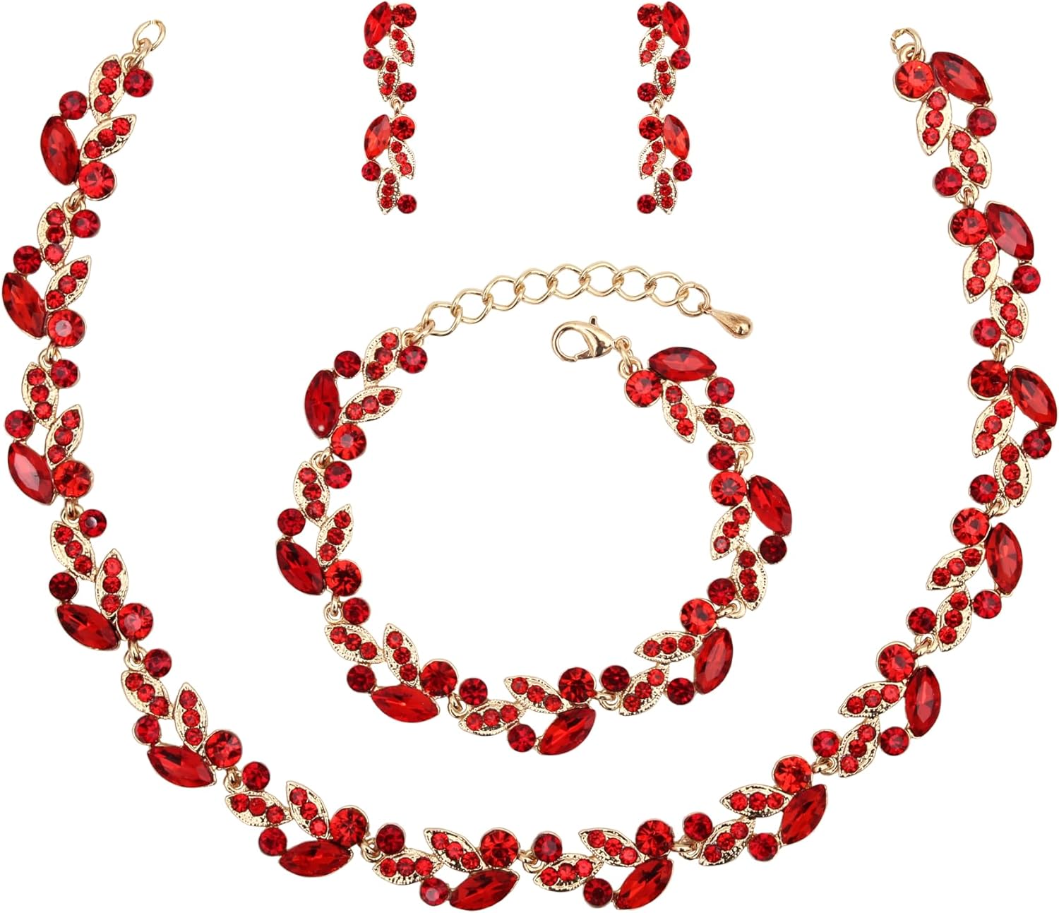QLLYHLH Woman’s Brides Bridesmaid Leaf Choker Necklace Dangle Earrings Link Bracelet Austrian Crystal Wedding Jewelry Set Prom Costume Party Events | Brides, Bridesmaid, Prom, Events, Costume Party, Leaf