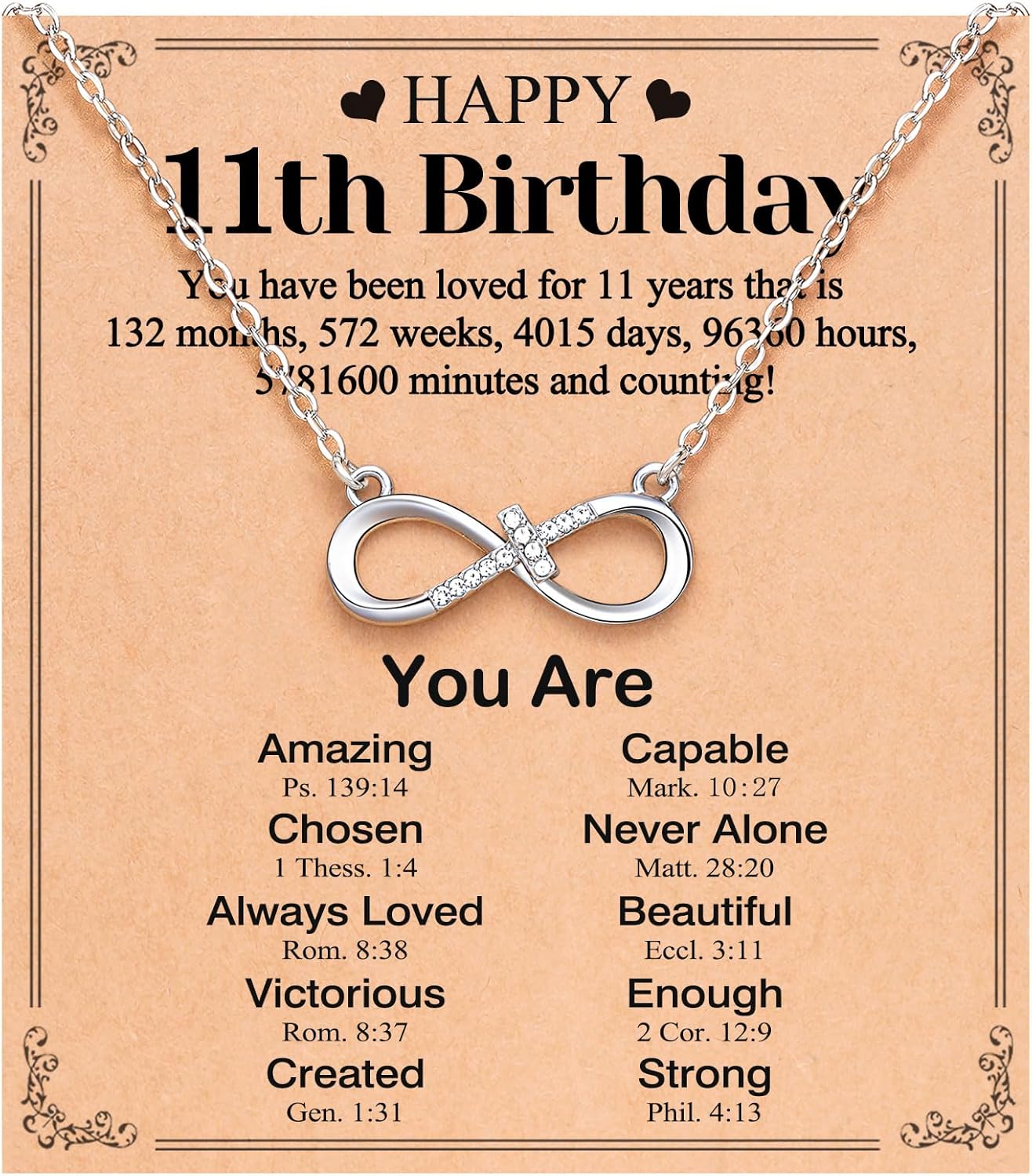 UNGENT THEM Happy 10th 11th 12th 13th 14th 16th 18th 21st Birthday Gifts, Love is Forever Infinity Cross Necklace Religious Presents for Women Her