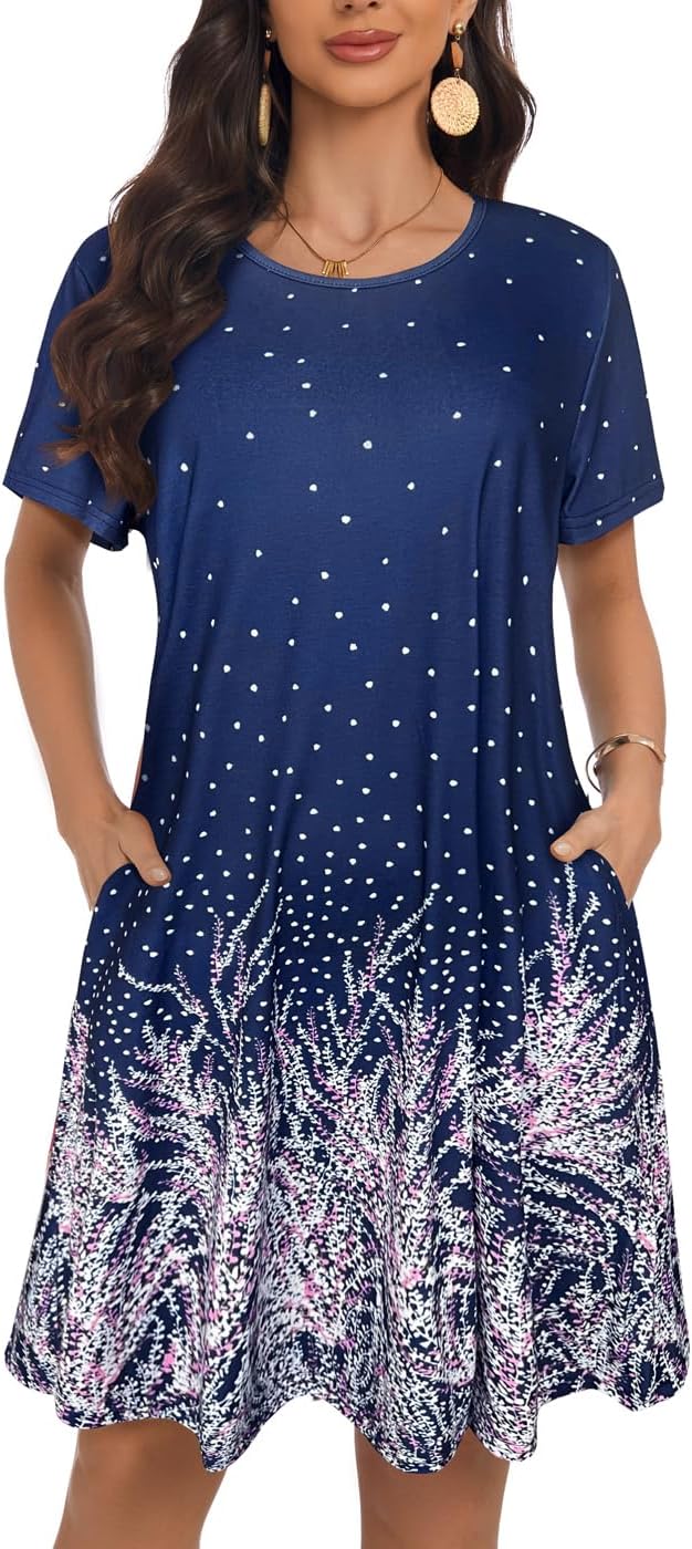 My Sky Summer Dresses for Women 2026 Casual Short Sleeves Tshirt Flowy Beach Plus Size Sundress with Pockets