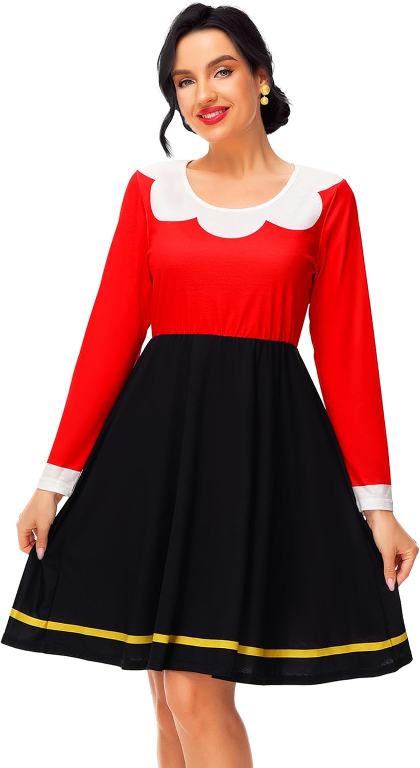 Deerose Womens Halloween Costume Dresses Funny Long Sleeve Elastic Waist Dress