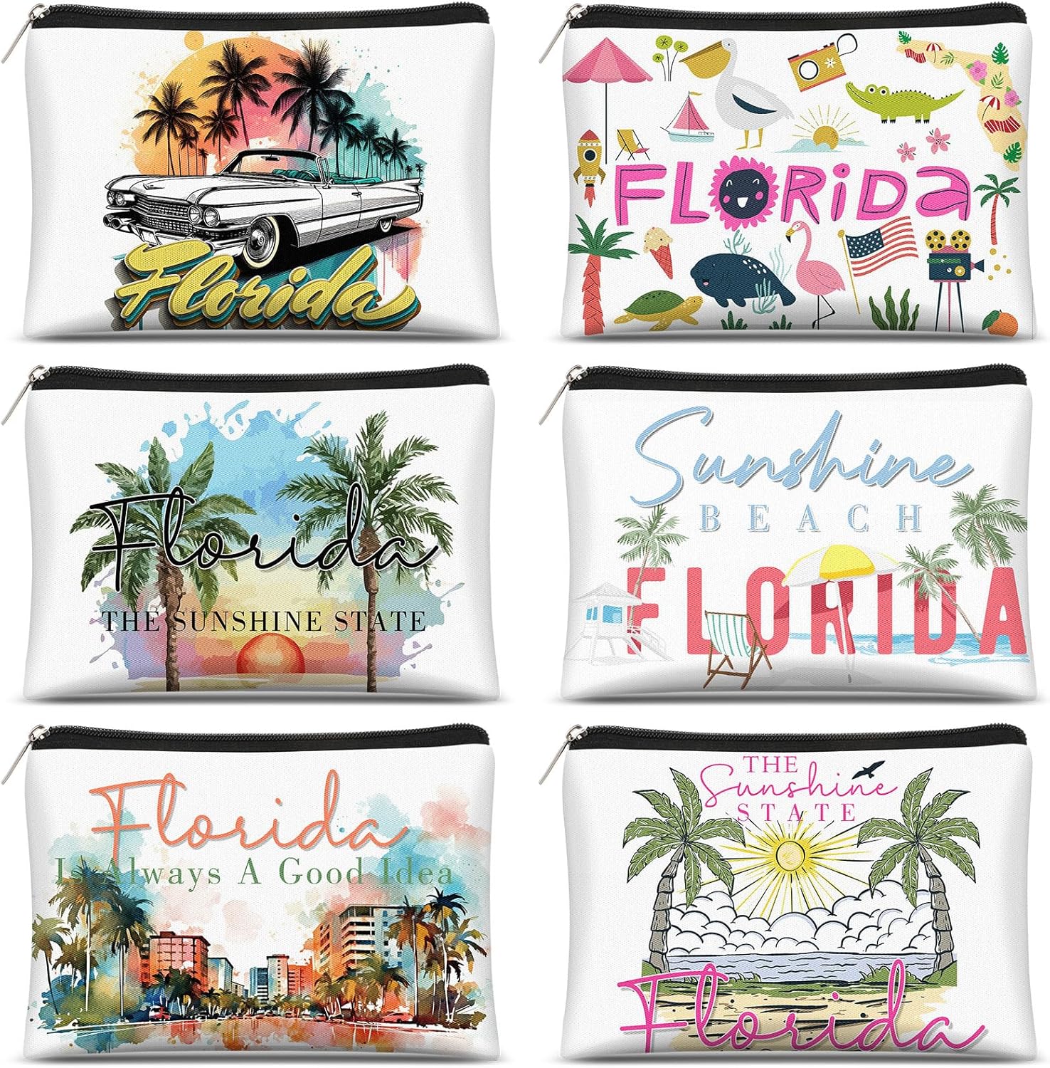 - Ample Quantity: each package contains 6 Florida themed zipped bags; This generous quantity makes it an ideal choice if you are looking for the ideal party favor or ideal gift; You can share them as a Florida souvenir, or use them as a pouch purse to store various items while keeping some for your use