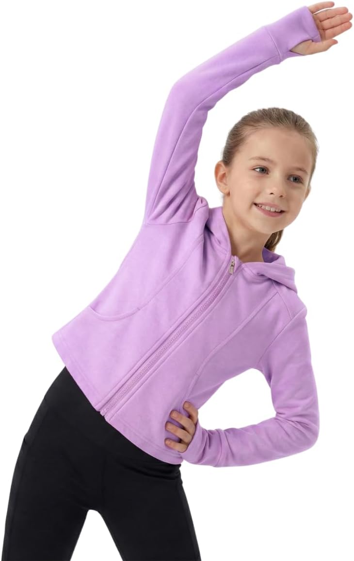 WELAKEN Girls Athletic Zip-Up Hoodie Sweatshirt,Long Sleeve Casual Hoodie for Kids