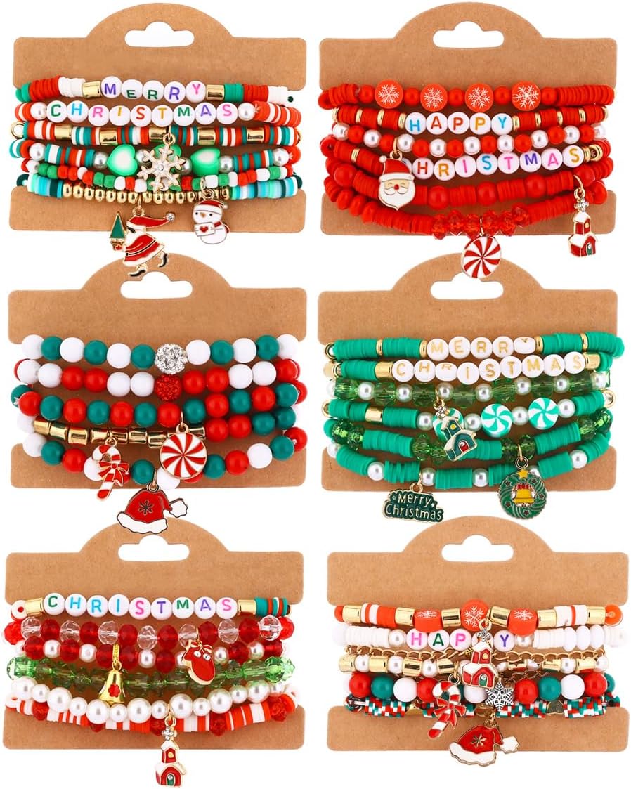 Cooluckday 36 Pcs Holiday Heishi Surfer Bracelets for Women Bulk Easter Mother's Day Christmas St. Patrick's Day Mardi Gras Bracelet Stackable Stretch Friendship Bracelets Set