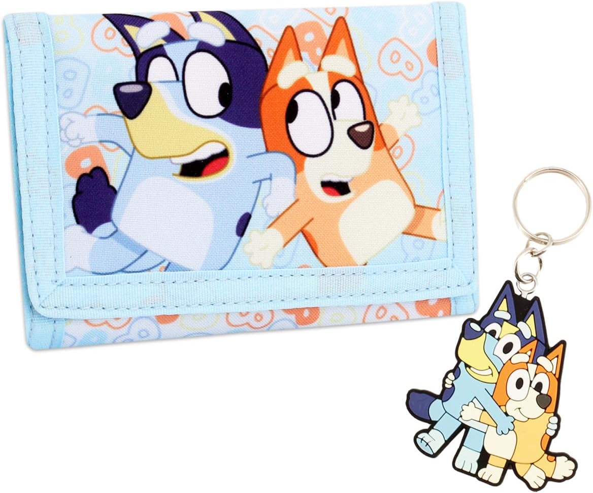 - BOYS WALLET WITH FUN BLUEY KEYCHAIN – Includes a matching kid wallet and Bluey stuff themed keychain, making it a playful and practical combo.