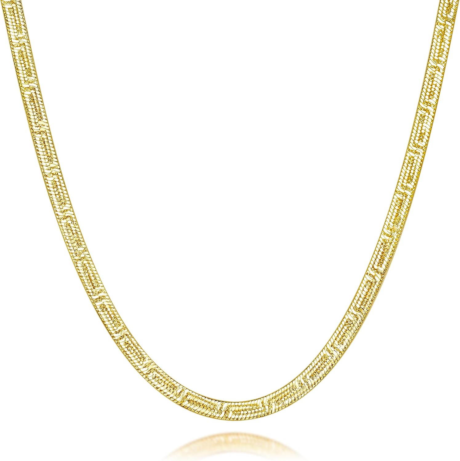 4mm 14K Gold Necklace for Women Dainty Gold Necklace for Women Golden Chain for Men 14k Whispers of Heritage with Chinese Ancient Fret Patterns Waterproof Snake Golden Chain Necklaces 16,18,20,22,24in