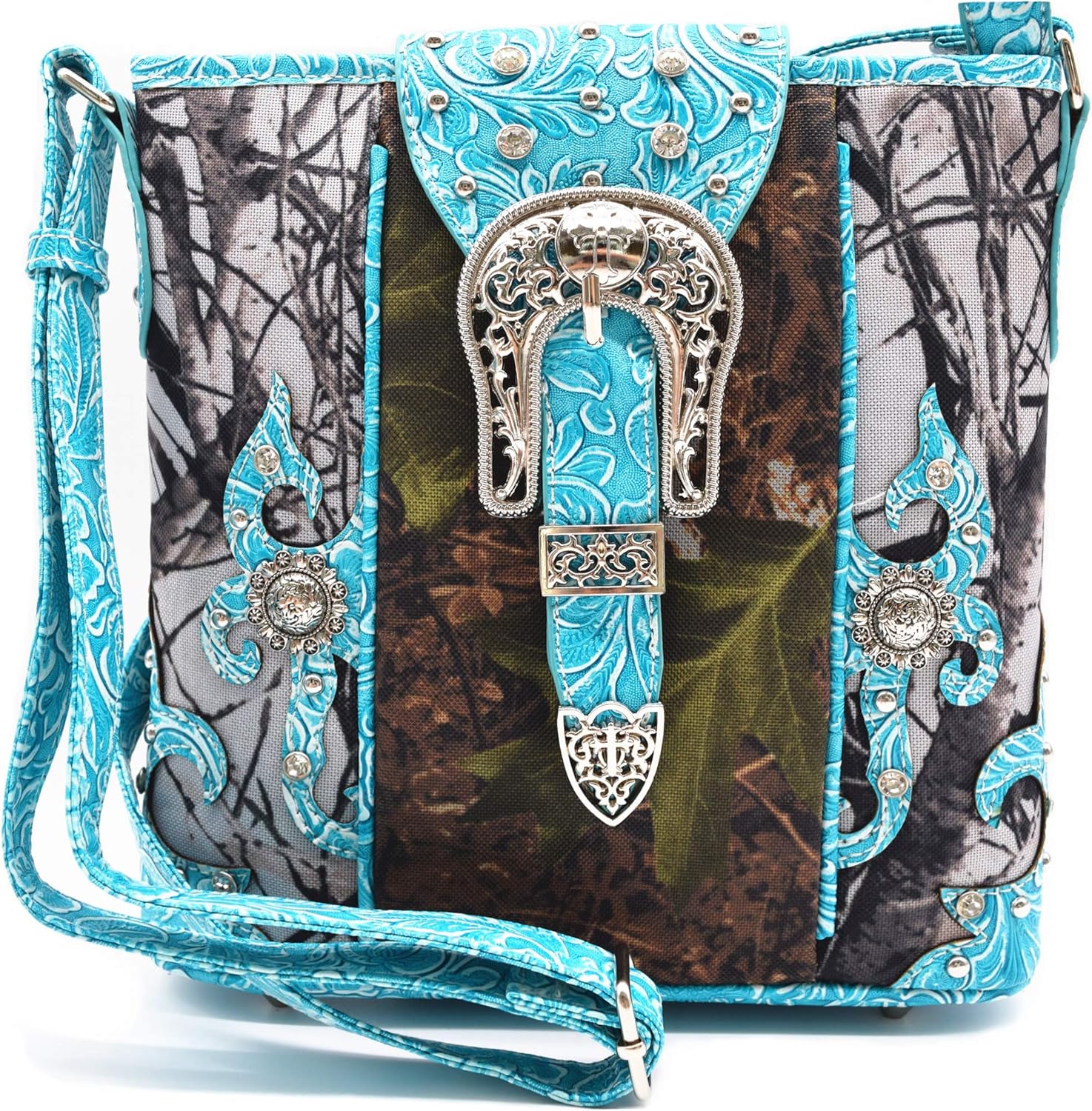 Camouflage Rhinestone Cross Pistol Buckle Western Crossbody Handbags Cowgirl Country Studded Purse Women Single Shoulder Bag | Rhinestone, Cross, Pistol, Buckle, Cowgirl, Country