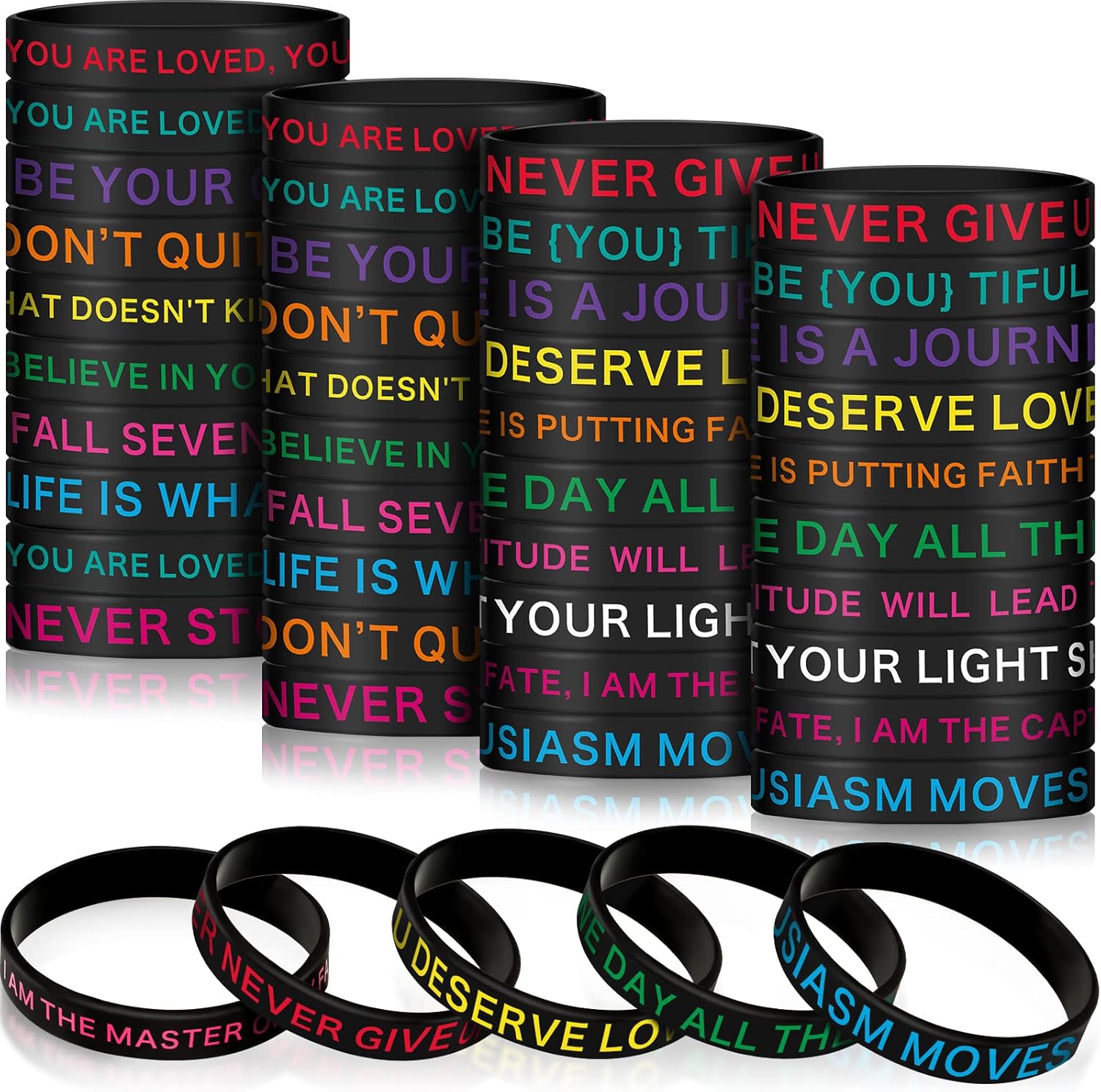 60 Pieces Motivational Quote Rubber Wristbands Colored Inspirational Silicone Bracelets Stretch Unisex Wristbands for Women Men Gifts, 20 Styles (Dark Colors)
