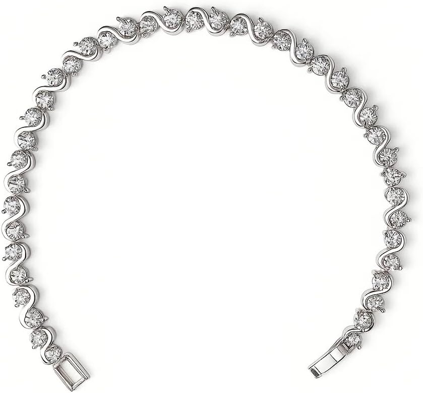 FAIRY COUPLE Elegant S-Wave Tennis Bracelet for Petite Women, 6.7 Inch 18K White Gold Plated with 3mm CZ, Slim Fit Anniversary Jewelry Gift B93