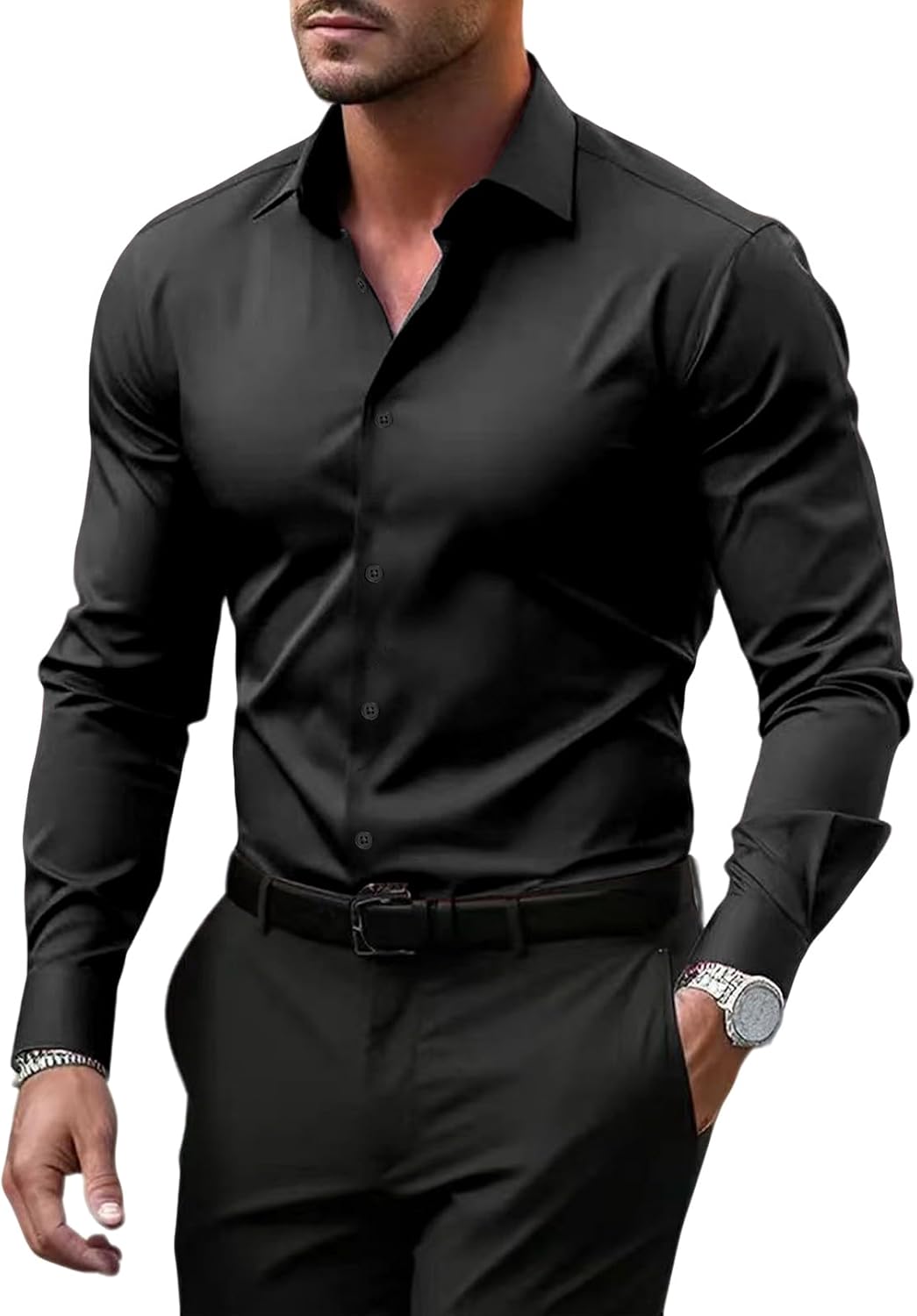 BUXKR Men's Wrinkle Free Slim Fit Dress Shirts Formal Long Sleeve Button Down for Wedding Business