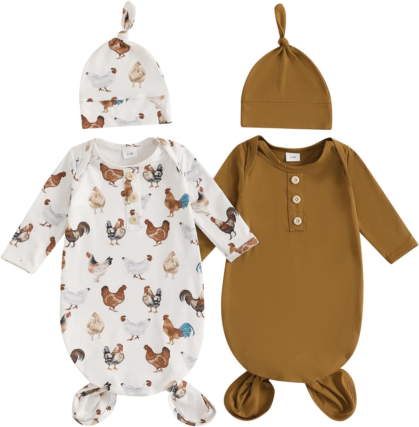 woshilaocai 2 Pack Baby Boy Girl Gown Sleeper Newborn Knotted Nightgown and Hat Set Infant Sleepwear