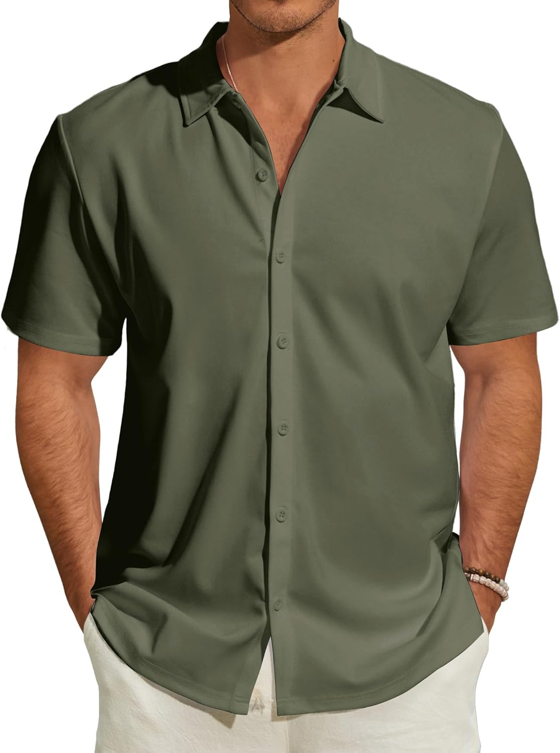 Mens Dress Short Sleeve Stretch Wrinkle-Free Formal Business Shirt Summer Casual Button Down Shirts