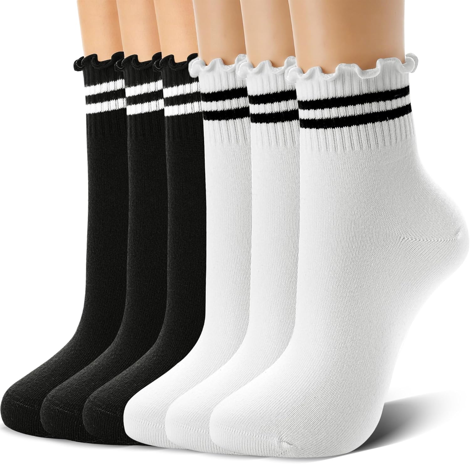 6 Pairs Womens Ruffle Socks Cute Frilly Ankle Sock Cotton Lettuce Edge Crew Socks