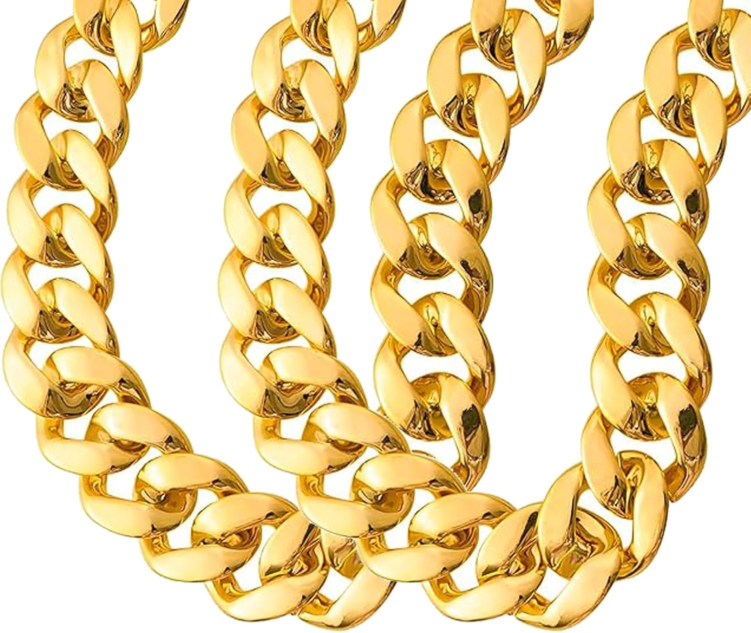 Chunky Fake Gold Chain for Hip Hop Rapper Costume Jewelry, Fake Plastic Gold Necklace Accessories for 80s 90s Men Women Halloween Costume Dress Up Party Props